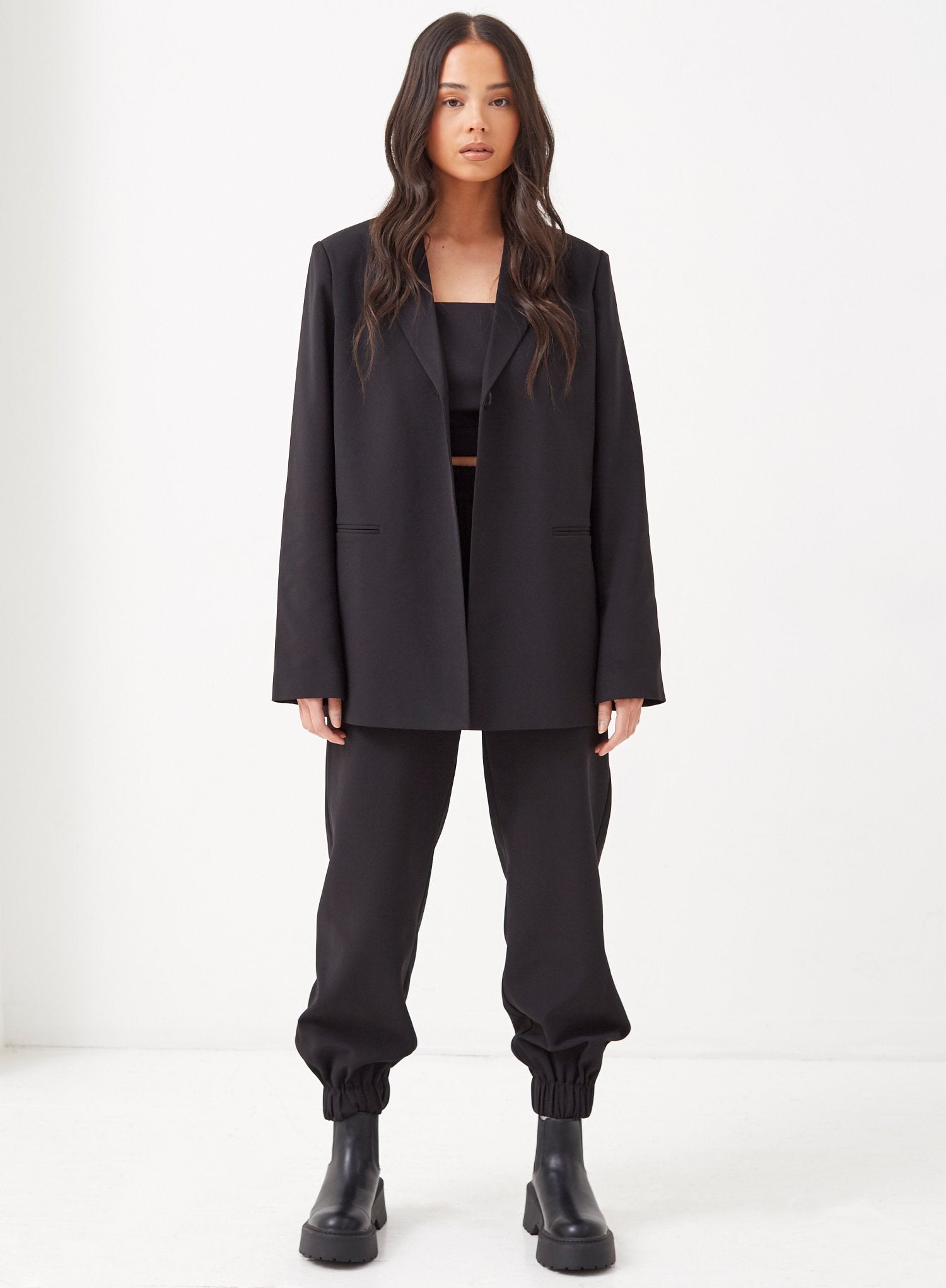 Nail the capsule wardrobe with this updated cult classic. Introducing the Aiden oversized blazer, a seasonless black staple. Looks best styled over an everyday basic tee and jeans, try pairing with the Aiden trousers for modern casual suiting.