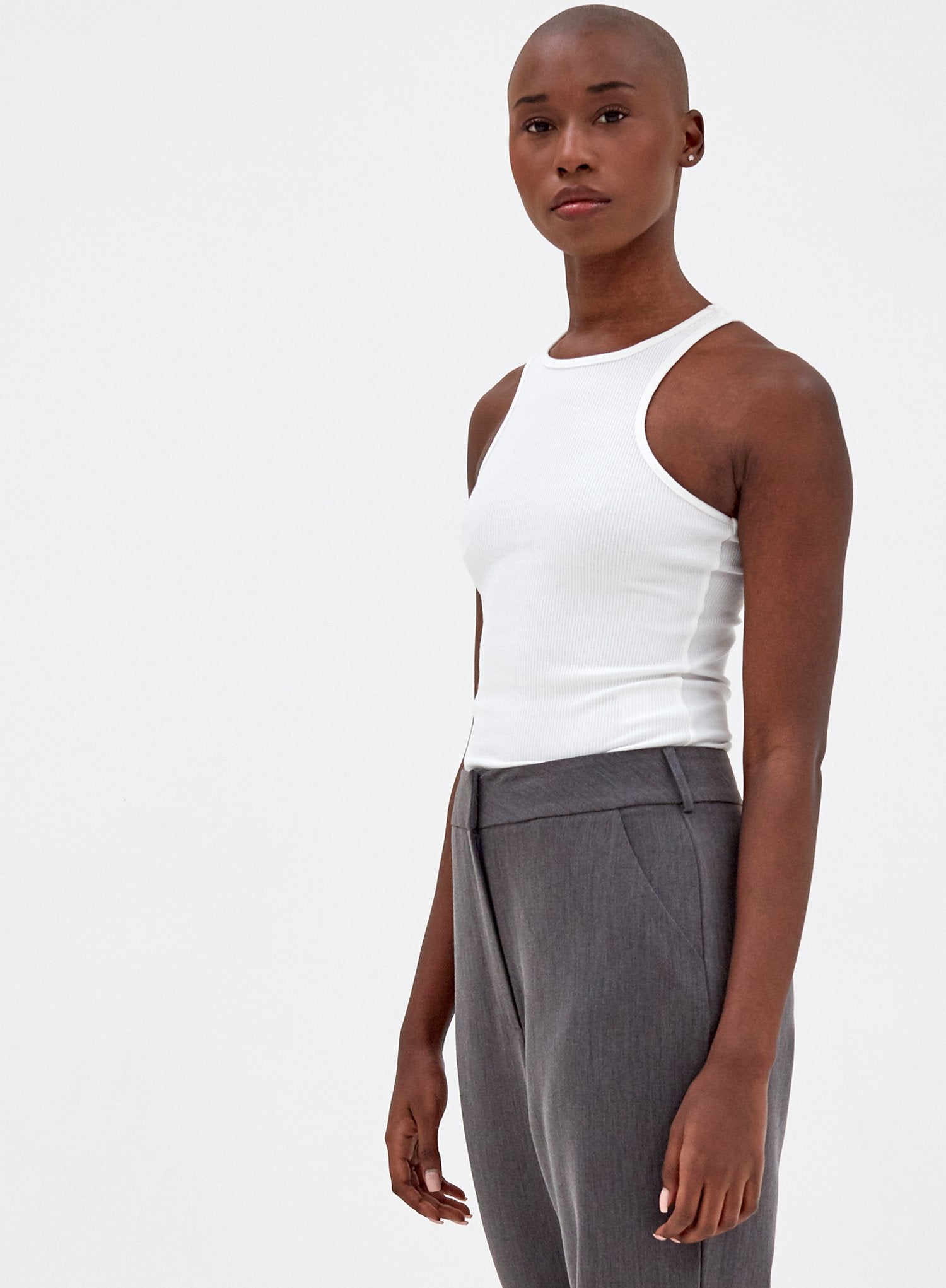 Work the white in our Amara tank. Cut in a close-fitting rib with a classic racer back, this is an everyday essential that will never go out of season. Ideal for layering or wearing alone, style with your comfies or smarten it up under tailoring