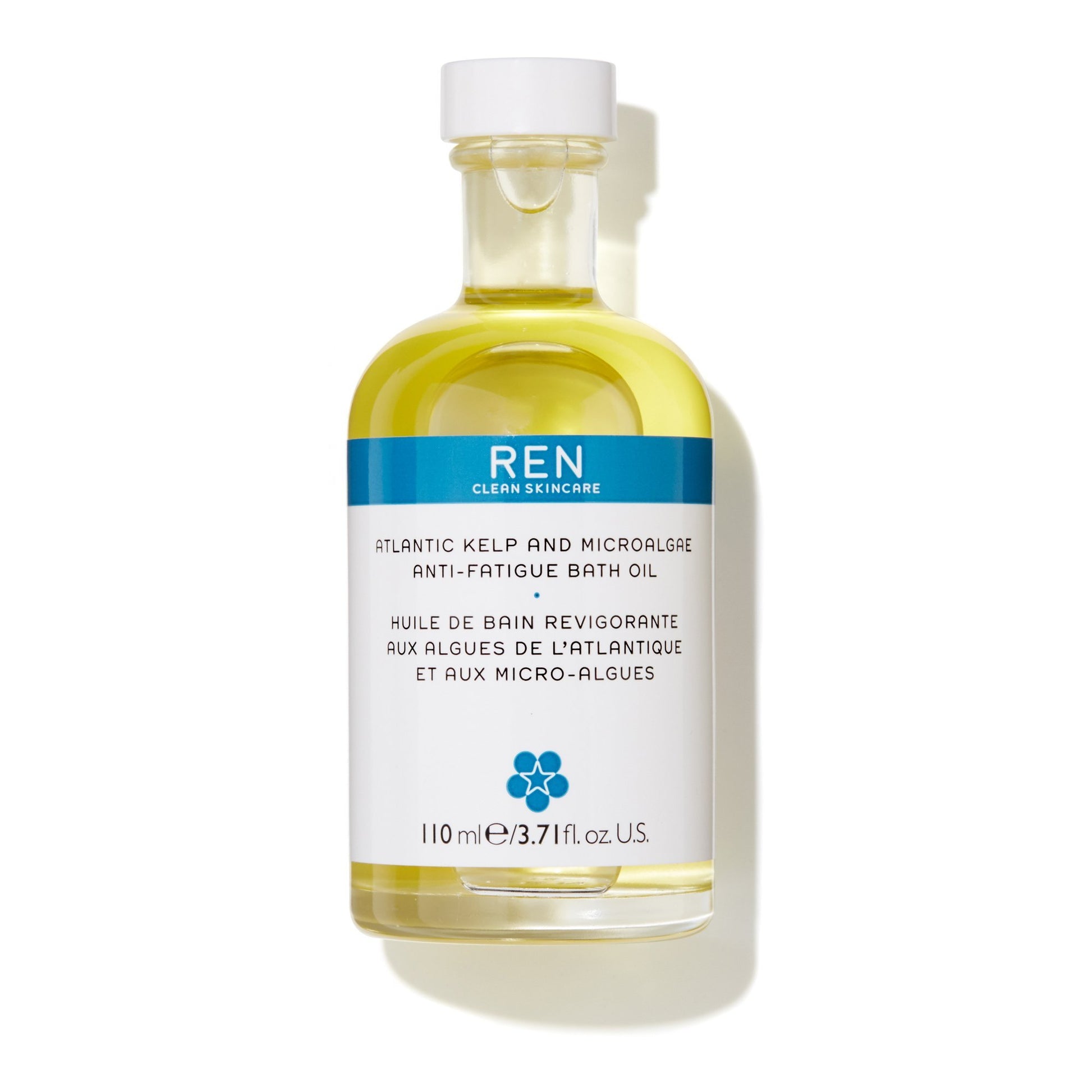 The Atlantic Kelp bath oil contains a luxurious and highly nourishing mixture of Atlantic algae and Plankton extracts for a silky, relaxed and hydrated skin. Plankton extracts also reduce the thinning of the epidermis for mature skin and prevent drying out. The exclusive blend of REN anti-fatigue essential oils (Geranium, Sage, Rosemary and Cypress) energizes and alleviates fatigue and stress.